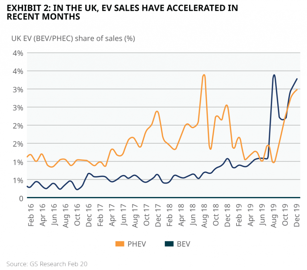 1 Source: Briefing Paper: Electric vehicles and infrastructure, UK Parliament, March 2020